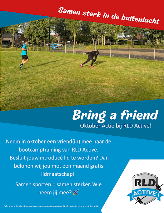 RLD Active behoudt zich het recht voor de actie tussentijds te wijzigen of stop te zetten bij misbruik of bijzondere omstandigheden.Bring your Friend to Bootcamp